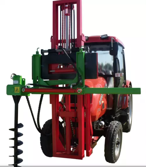 Гідравлічний буром з підйомника встановлюється на фронтальний навантажувач. Робоча частина бурильної машини харчується від гідравлічного вала двигуна. Бур використовується, щоб зробити отвори в землі в умовах обмеженого простору, наприклад, рядами дерев або для створення інформаційних знаків, встановлення парканів для сільськогосподарських культур і т.д </ p>